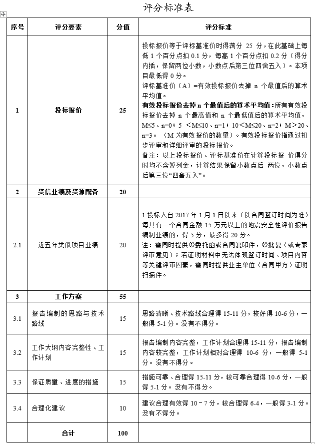 本項(xiàng)目在供應(yīng)商滿足資格要求的前提下依據(jù)業(yè)績(jī)、資信、報(bào)價(jià)等方面進(jìn)行綜合評(píng)選,詳見評(píng)分標(biāo)準(zhǔn)表。本項(xiàng)目最高限價(jià)為52萬(wàn)元。