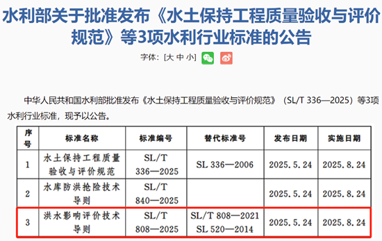 近日,公司參編水利行業(yè)標準《洪水影響評價技術(shù)導(dǎo)則》(SL/T 808—2025)(中華人民共和國水利部公告2025第12號)正式發(fā)布,將于2025年8月24日起實施。