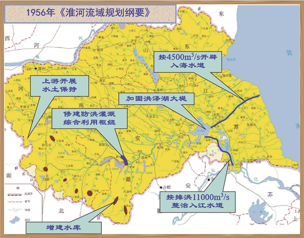 1954年洪水,淮河中游淮北大堤部分漫決,暴露出治淮初期的防洪標準偏低等問題。為了提高淮河治理標準,綜合利用淮河水資源,治淮委員會勘測設計院會同豫、皖、蘇三省水利部門、國家有關部委,在蘇聯水利專家指導下第一次全面、科學地編制了包括防洪、除澇 、 灌溉 、 航運 、 水力發電 、漁業生產、城市工業供水等水資源綜合開發利用的總體發展工程規劃 —《淮河流域規劃報告》。在本次流域規劃的指導下,建成了宿鴨湖 、 磨子潭等10座大型水庫,完成了蚌埠閘工程、江都水利樞紐(我國規模最大的電力排灌工程、亞洲最大的泵站樞紐,也是南水北調東線的起點)。