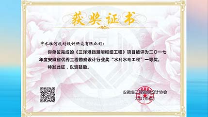 安徽省勘察設(shè)計行業(yè)獎—三洋港擋潮閘樞紐工程