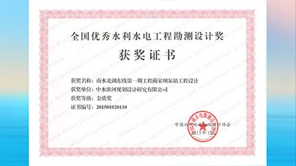全國優(yōu)秀水利水電工程勘測設(shè)計獎—藺家壩泵站工程設(shè)計