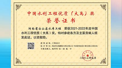 中國水利工程優(yōu)質(zhì)獎—河南省出山店水庫
