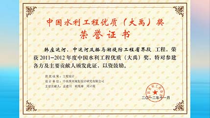 中國水利工程優(yōu)質(zhì)獎—韓莊運河、中運河及駱馬湖堤防工程省界段