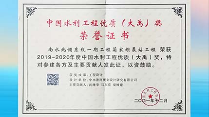 中國水利工程優(yōu)質(zhì)獎—藺家壩泵站工程