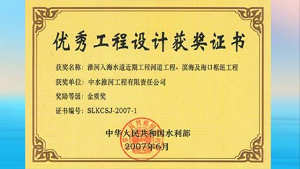 優(yōu)秀工程設(shè)計獎—淮河入海水道近期工程河道工程、濱海及海口樞紐工程