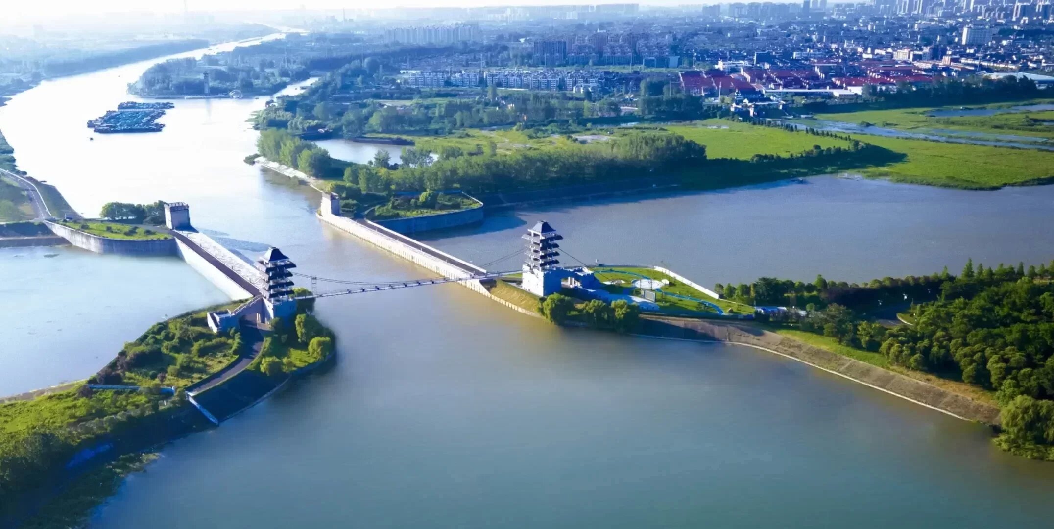 1999年,一條橫亙在蘇北大地上的宏偉工程——淮河入海水道近期工程全面開工建設(shè)。2003年4月,淮安樞紐工程竣工并投入使用。建造完成的淮安樞紐工程成功解決了京杭運(yùn)河、灌溉總渠、入海水道三河交叉、泄洪與航運(yùn)的矛盾,實(shí)現(xiàn)了淮河和京杭運(yùn)河的各自獨(dú)流。淮安樞紐立交地涵無論是涵洞規(guī)模,還是泄洪能力都是目前亞洲最大的水上立交工程。該工程先后獲得“全國優(yōu)秀工程設(shè)計(jì)銀獎(jiǎng)”“中國建筑工程魯班獎(jiǎng)”等獎(jiǎng)項(xiàng)。2009年,榮獲新中國成立60周年“百項(xiàng)經(jīng)典暨精品工程”。